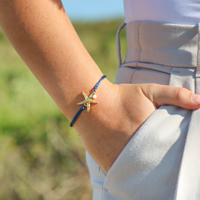 Astro est un indémodable avec sa petite étoile dorée et son cordon en nylon bleu marine, tout en douceur. Un bijou indispensable lors de vos balades sur la côte Atlantique !