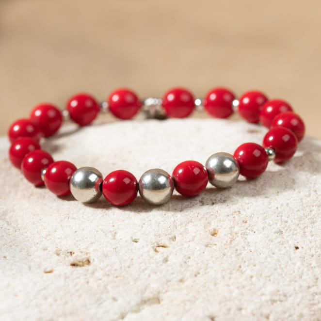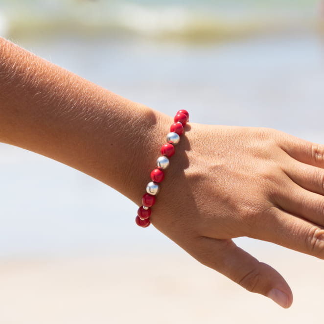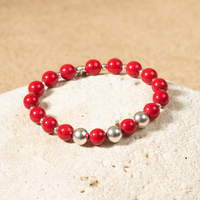 Élégant et rafiné, le bracelet Aurélie s'accordera parfaitement avec la plupart de vos bijoux et de vos tenues. Ses jolies perles en verre rouge, tendances et minimalistes, seront idéales pour vous accompagner au quotidien !