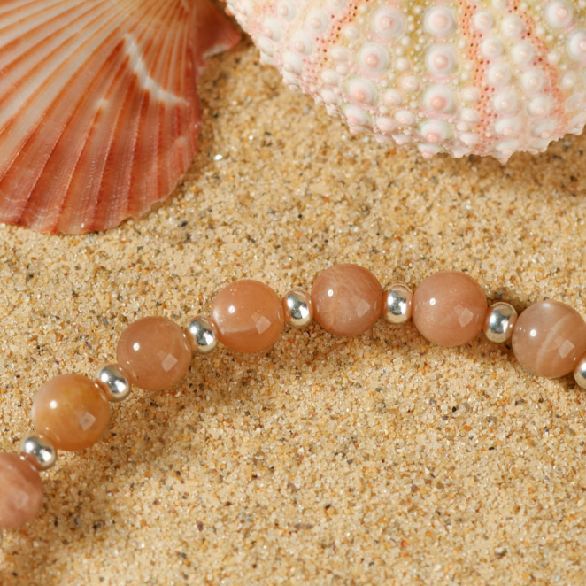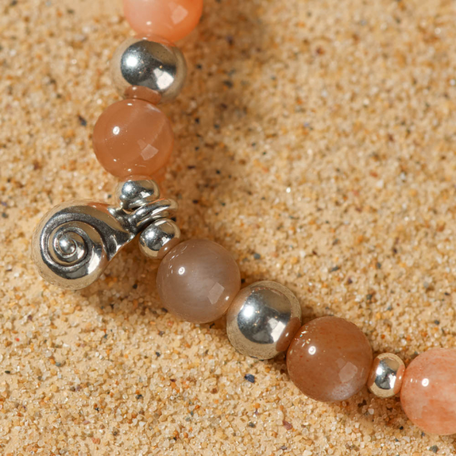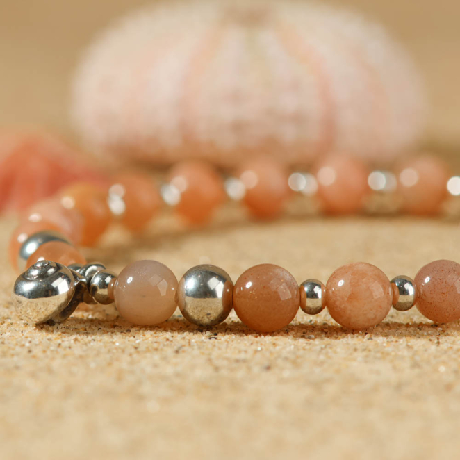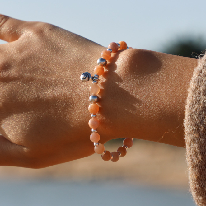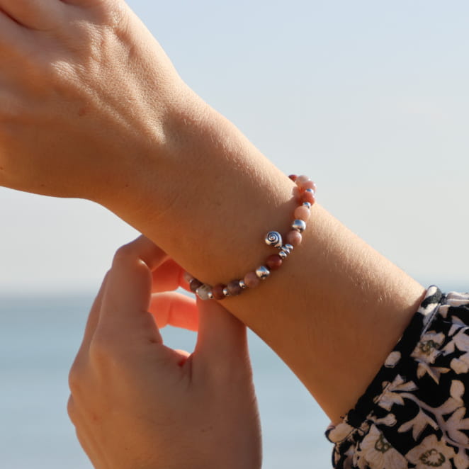 Découvrez le bracelet pour femme Bigorne, symbole de délicatesse avec ses perles rose saumon. voir plus