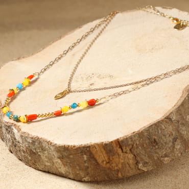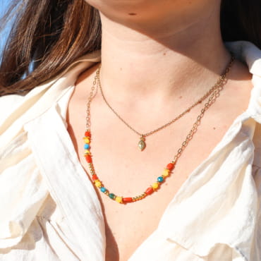 Glissez un peu de lumière à votre poignet, avec le bracelet Bologne. Il mêle douceur et éclat. Des perles jaunes, corail et bleu, mêlées à des touches dorées, pour un mélange joyeux et délicat. À porter tous les jours, seul ou en duo avec vos bracelets préférés.