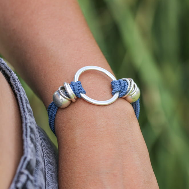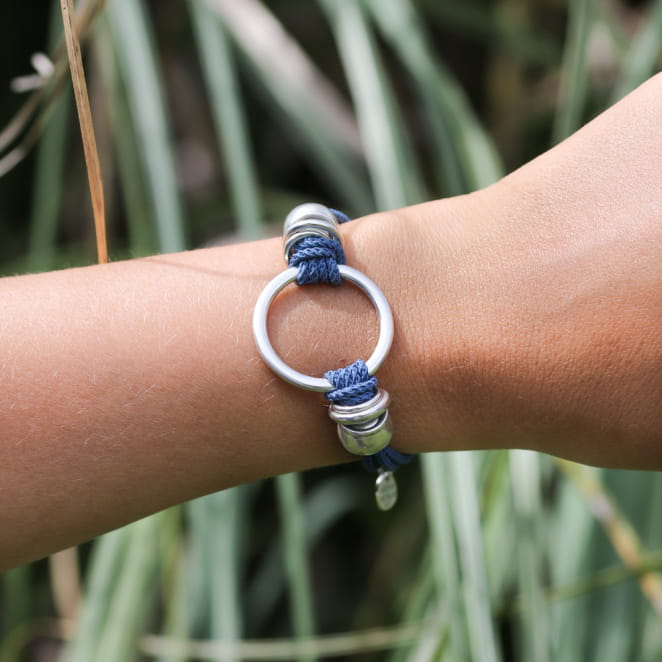 Optez pour le bracelet original Bowling, un bijou à la fois imposant et élégant. Son cordon en polyester bleu montana saura épouser parfaitement votre poignet, un accessoire tendance et élégant à porter au quotidien ou pour des occasions.