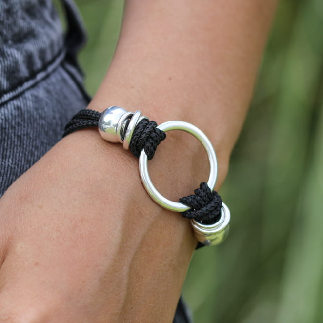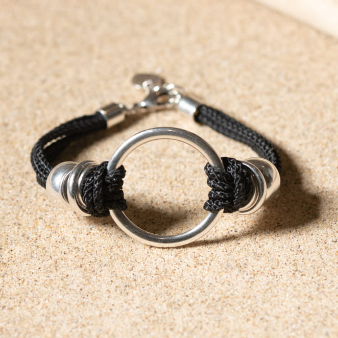 Optez pour le bracelet original Bowling, un bijou à la fois imposant et élégant. Son cordon en polyester noir saura épouser parfaitement votre poignet, un accessoire tendance et élégant à porter au quotidien ou pour des occasions.