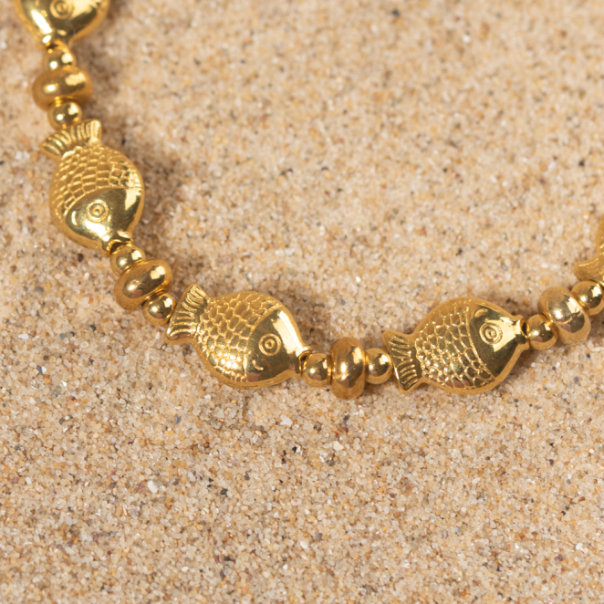 Le bracelet pour femme Brème, avec ses perles dorées en forme de poissons, est une véritable ode à la mer. voir plus