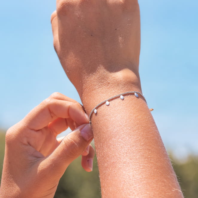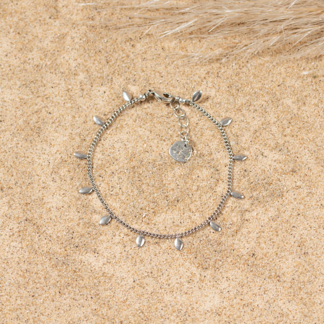 Buis est un bracelet pour femme indémodable ! Il apporte sa délicatesse et son élégance à toute occasion avec sa fine chaîne argentée à pampilles. Une touche originale pour tous vos looks, lors de vos balades en bord de mer comme en ville. L'accessoire indispensable des beaux jours !