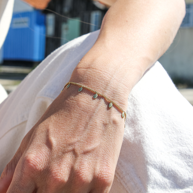 Buis est un bracelet pour femme indémodable ! Il apporte sa délicatesse et son élégance à toute occasion avec sa fine chaîne dorée à pampilles. Une touche originale pour tous vos looks, lors de vos balades en bord de mer comme en ville. L'accessoire indispensable des beaux jours !