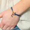 Craquez pour le bracelet femme Casbtan, où le bleu marine se marie à l’éclat doré du métal. Ce bijou apporte une touche de mouvement et de légèreté à votre poignet grâce à ses cordons entrelacés. Son pendentif coquillage, sublimé par une perle de nacre blanche, évoque une délicate inspiration du bord de mer.