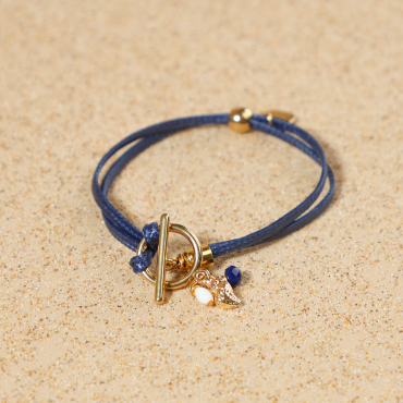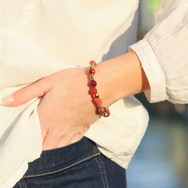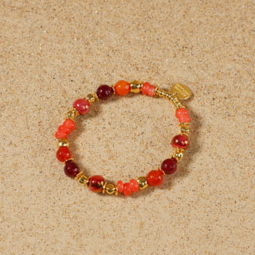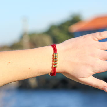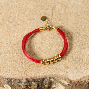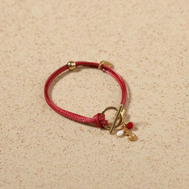 Craquez pour le bracelet femme Casbtan, où le cordon rouge se marie à l’éclat doré du métal. Ce bijou apporte une touche de mouvement et de légèreté à votre poignet grâce à ses cordons entrelacés. Son pendentif en forme d'ancre dorée, sublimé par une perle de nacre blanche, évoque une délicate inspiration du bord de mer.