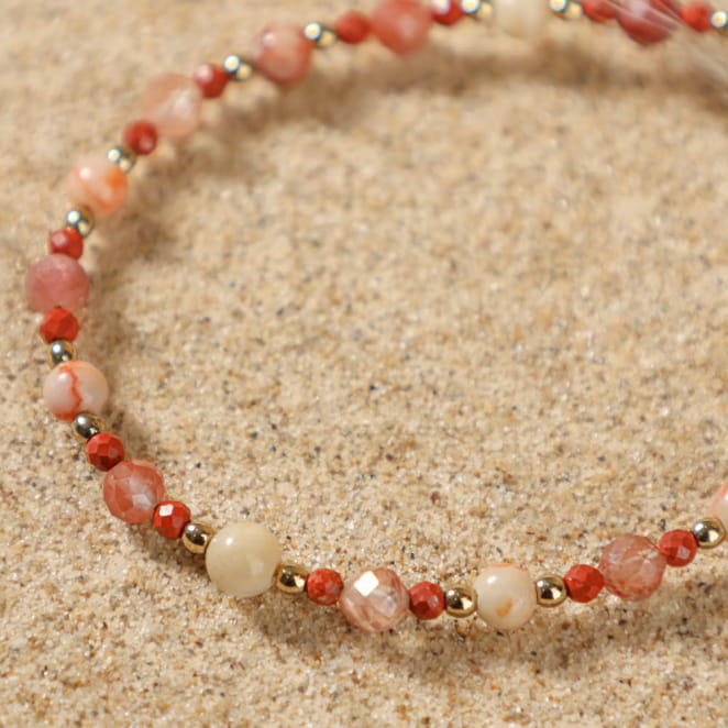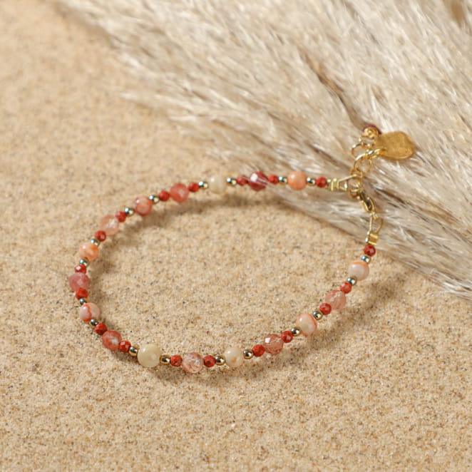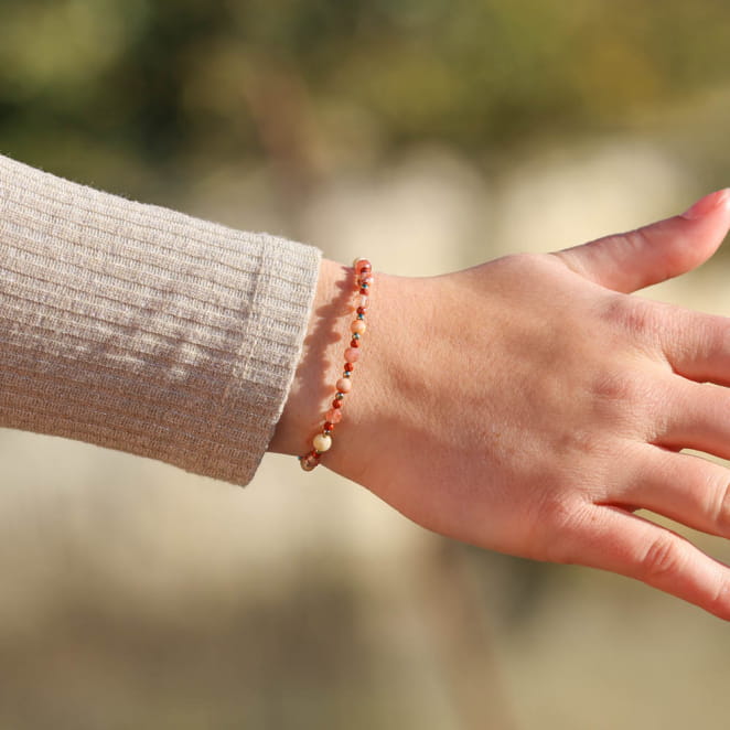 Apportez une touche de délicatesse à votre poignet avec le bracelet doré et terracotta Cailloux. voir plus