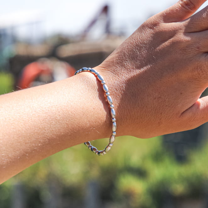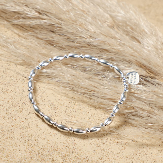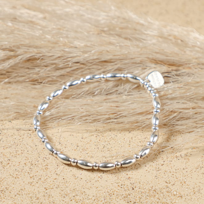 Le bracelet Calisson séduit par son design original et intemporel. Alternant des perles en métal argenté boule et tube, il offre une touche de sophistication à votre poignet. Un bijou délicat et raffiné, parfait pour ajouter une note d'élégance à votre tenue.