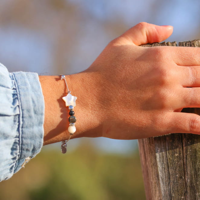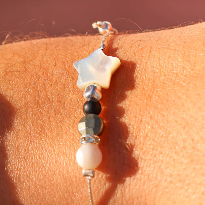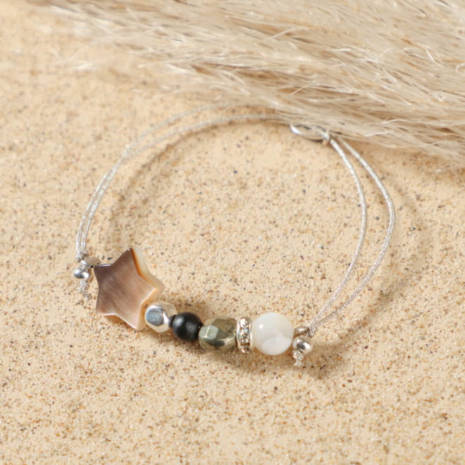 Craquez pour le bracelet Caprice, il allie l’éclat raffiné de son tissu argenté brillant à la douceur subtile des perles grises, pour un équilibre parfait entre modernité et élégance. Léger et confortable, il habille votre poignet d’une touche lumineuse et délicate, rappelant les reflets de la mer au crépuscule. Un accessoire idéal pour compléter vos looks, du plus casual au plus sophistiqué, et une invitation à briller en toute simplicité.