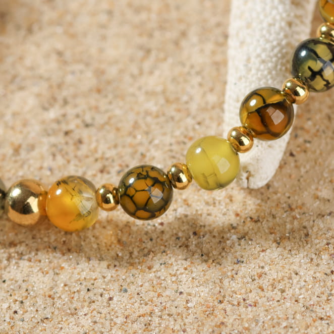 Le bracelet Cardine illumine chaque tenue avec ses perles d'agate jaune moutarde et en métal doré . voir plus