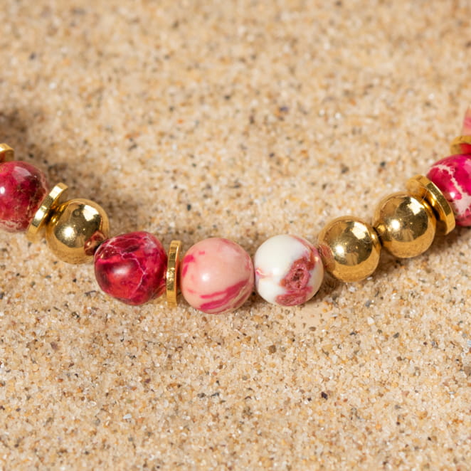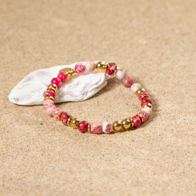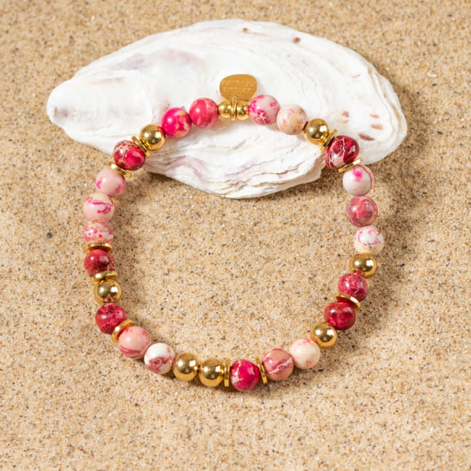 Rayonnez avec le bracelet Chambord ! Ce bijou pour femme se distingue par ses perles dorées étincelantes et ses perles fuchsia vibrantes. L’alliance de ces couleurs sophistiquées crée un bracelet à la fois élégant et audacieux, parfait pour ajouter une touche de couleur à toutes vos tenues. Le bracelet Chambord est l'accessoire idéal pour une allure chic et originale.