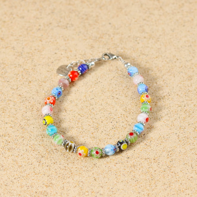 Le bracelet coloré Cirque et ses jolies perles en verre multicolore évoque l'été, les vacances, la joie de vivre ! Ses couleurs joyeuses peuvent se porter en accumulation ou s'accorder avec des bracelets argentés. Ce bracelet pour femme existe en version enfant.