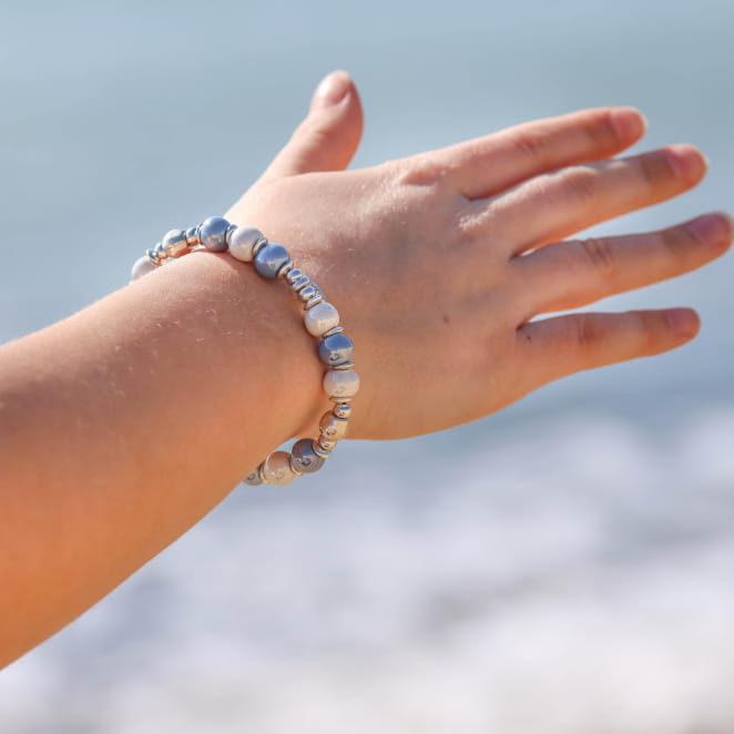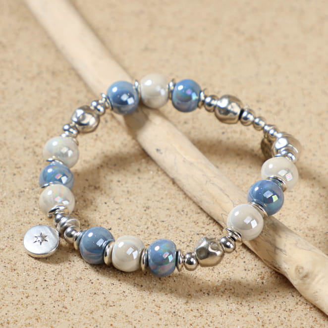 Emportez un éclat d’océan avec vous, avec le bracelet Constellation. Ce bracelet en perles de céramique, aux nuances de bleu et de blanc, capture la beauté changeante des vagues sous le soleil. Inspiré par le rivage, il évoque les vagues qui longent le sable. Léger et confortable, il s’enfile facilement et s’adapte à tous les poignets grâce à son fil élastique. Un bijou tout en simplicité, à porter au quotidien comme un doux rappel des journées au bord de l’eau.