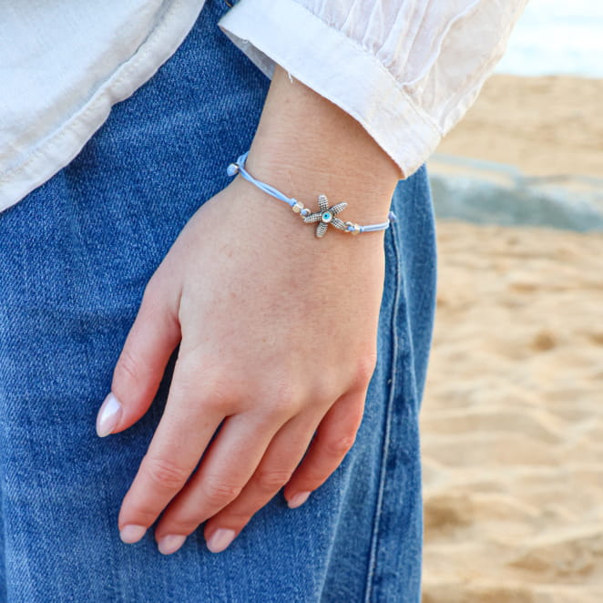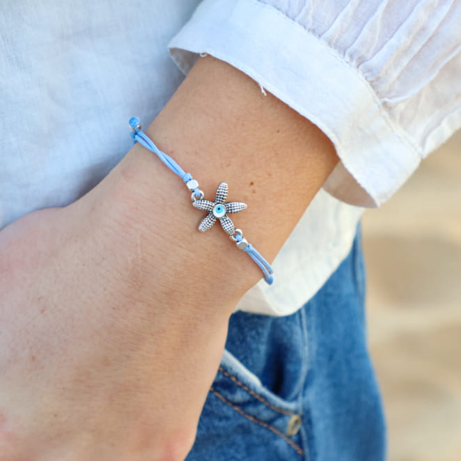 Misez sur un style tendance et facile à porter avec le bracelet Corinthe. Son cordon en polyester bleu ciel, réglable pour un ajustement parfait, est rehaussé d’un pendentif étoile de mer argenté à l’éclat lumineux, orné d’un détail bleu central qui apporte une touche de couleur subtile. Léger et confortable, il s’adapte à tous les poignets et se porte aussi bien seul qu’en accumulation. Un bijou pratique et raffiné, parfait pour compléter vos tenues estivales ou casual.