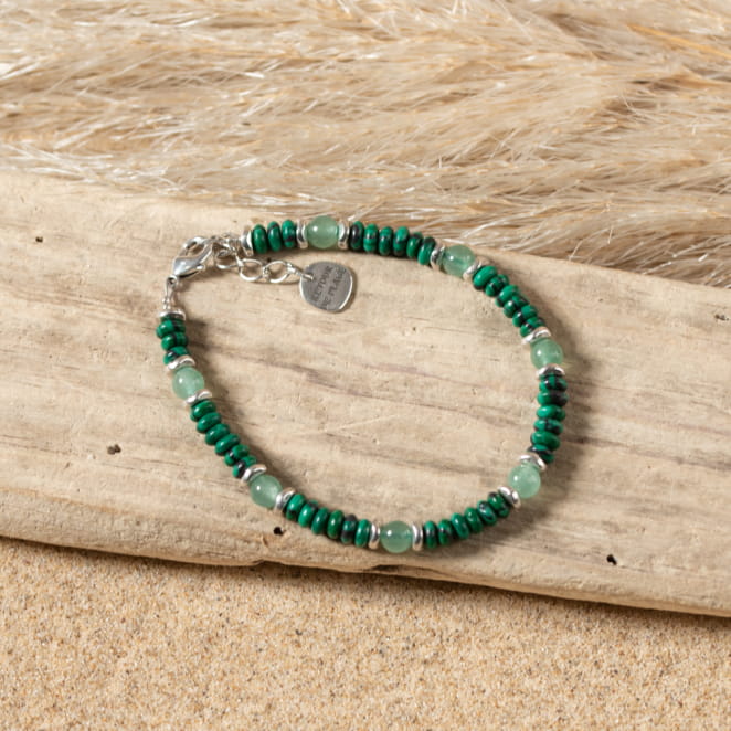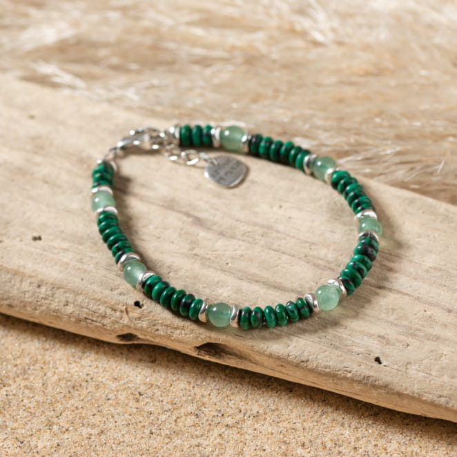 Découvrez le bracelet pour femme Cousso, un bijou élégant et vibrant. Composé de perles argentées et de perles vertes en aventurine et en malachite, ce bracelet allie harmonie et sophistication. Les pierres vertes apportent une touche de fraîcheur, tandis que les perles argentées ajoutent une note raffinée. Parfait pour sublimer n'importe quelle tenue avec style.