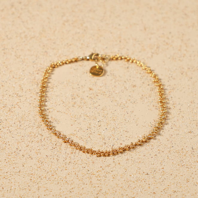 Le bracelet de cheville Quinoa habillera votre cheville de façon subtile et élégante. Ses délicats grelot en métal argenté apportent de l'éclat à votre pied.