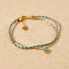 Direction les beaux jours avec le bracelet de cheville artisanal doré et bleu Zanzibar, agrémenté d'un charmant pendentif en coquillage doré. Fait main avec amour, cet accessoire évoque la joie de vivre. Inspiré par les doux moments passés au bord de l'eau, il rappelle la détente et la douceur des vacances estivales. Portez-le pour une touche de couleur et de bonheur à chaque pas, et laissez-vous emporter par son énergie positive tout au long de la journée !