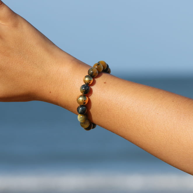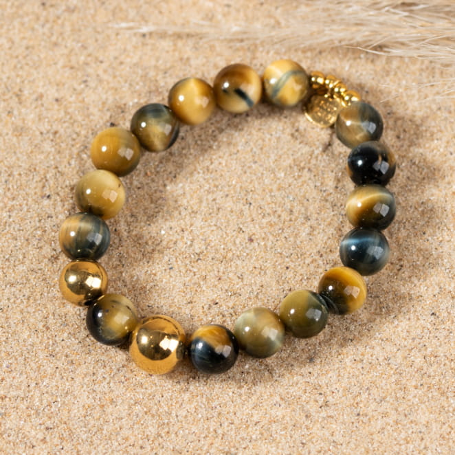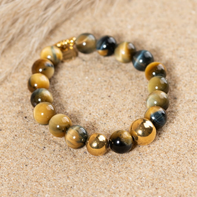 Le bracelet Derby est un accessoire sophistiqué qui allie l'authenticité des perles en pierre à l'éclat subtil des perles dorées. Cette combinaison harmonieuse apporte une touche d'élégance et de raffinement à votre style. Fabriqué avec des matériaux de qualité, ce bracelet évoque subtilement l'esthétique classique tout en offrant une allure moderne.