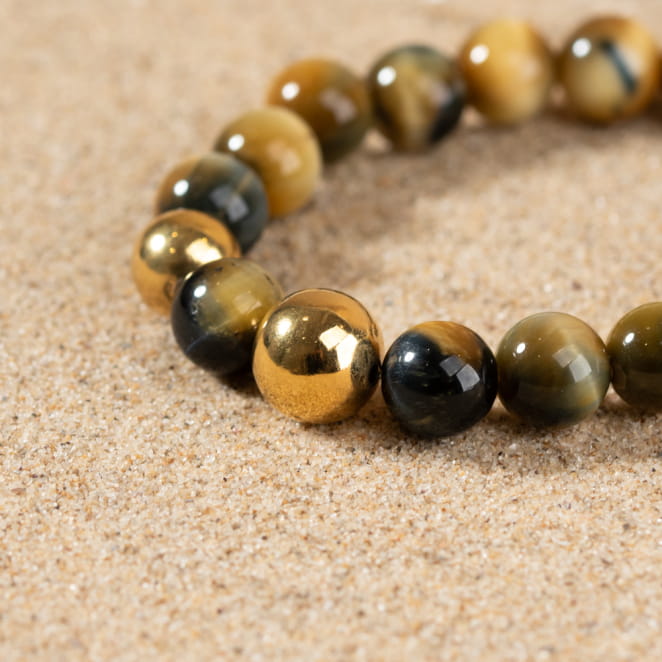Le bracelet Derby est un accessoire sophistiqué qui allie l'authenticité des perles en pierre à l'éclat subtil des perles dorées. voir plus