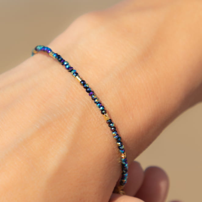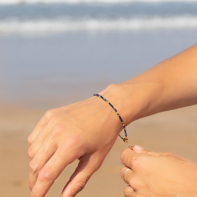 Craquez pour le bracelet Élegance, un bracelet fantaisie en perles fines. Doré et bleu marine, il incarne la sophistication subtile. Ses teintes délicates et son design raffiné ajoutent une touche de chic. Parfait pour les occasions spéciales ou pour sublimer votre look au quotidien, ce bracelet est l'accessoire idéal pour une allure élégante !