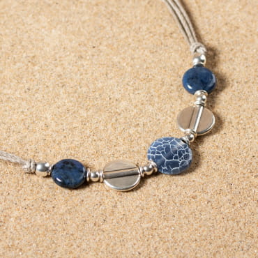 Adoptez l’esprit des océans avec le bracelet Elounda élastiqué en lapis-lazuli, verre et céramique. voir plus