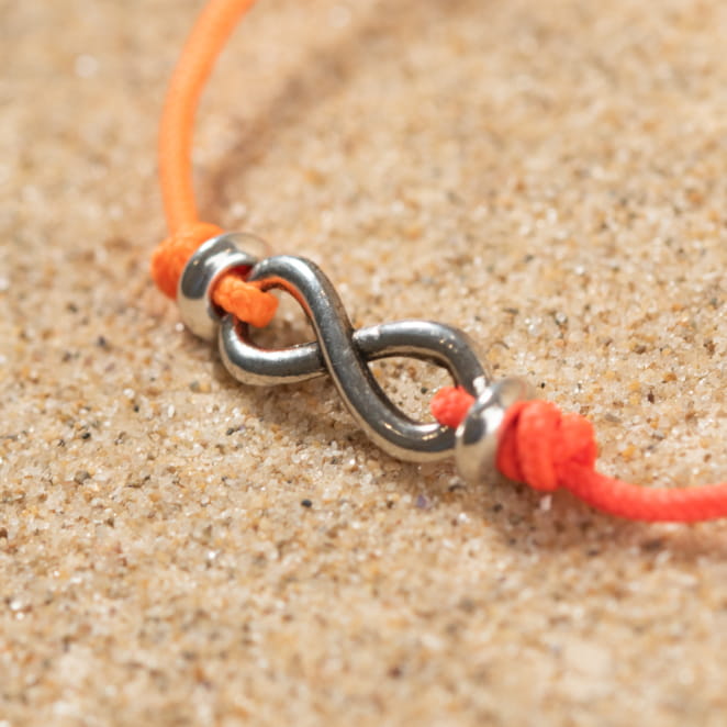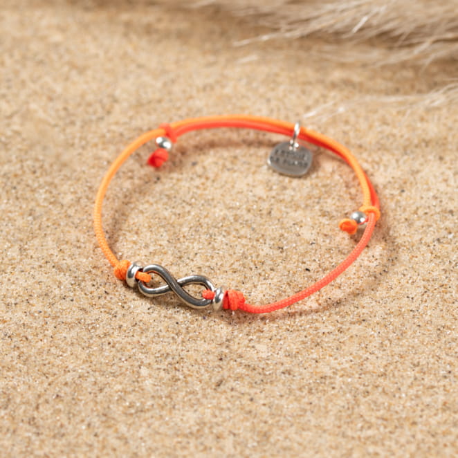 Offrez à votre enfant le bracelet Infini, une explosion de couleur et de style. Avec ses cordons orange fluo et rose fluo associés à un pendentif infini argenté, ce bracelet incarne la joie de vivre et l'amour sans fin.