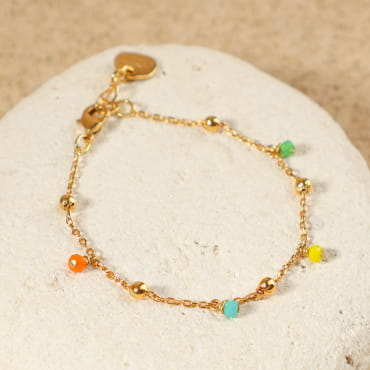 Découvrez notre barcelet pour enfant Lol : un délicat bracelet composé d'une chaîne dorée à l'or fin 24K et de petites perles roses pâles. voir plus