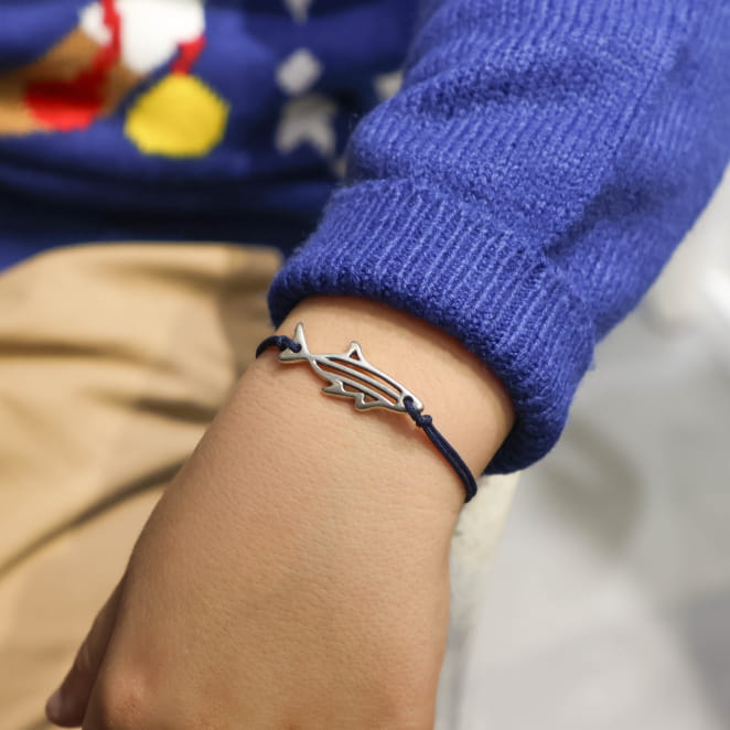 Offrez ce bracelet Shark à votre enfant. Un bijou discret qui lui rappelle ses vacances à la mer. Agréable à porter tous les jours avec son cordon en polyester bleu marine. Le bracelet parfait pour les fans d'océan et de requin !