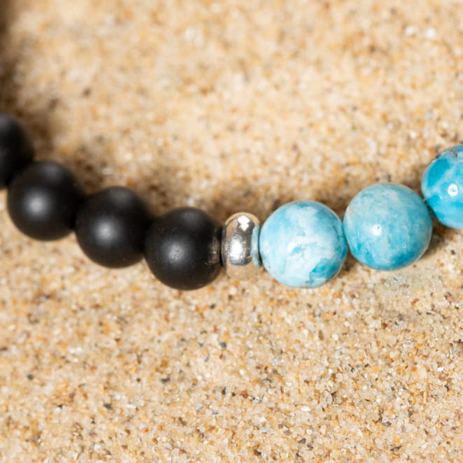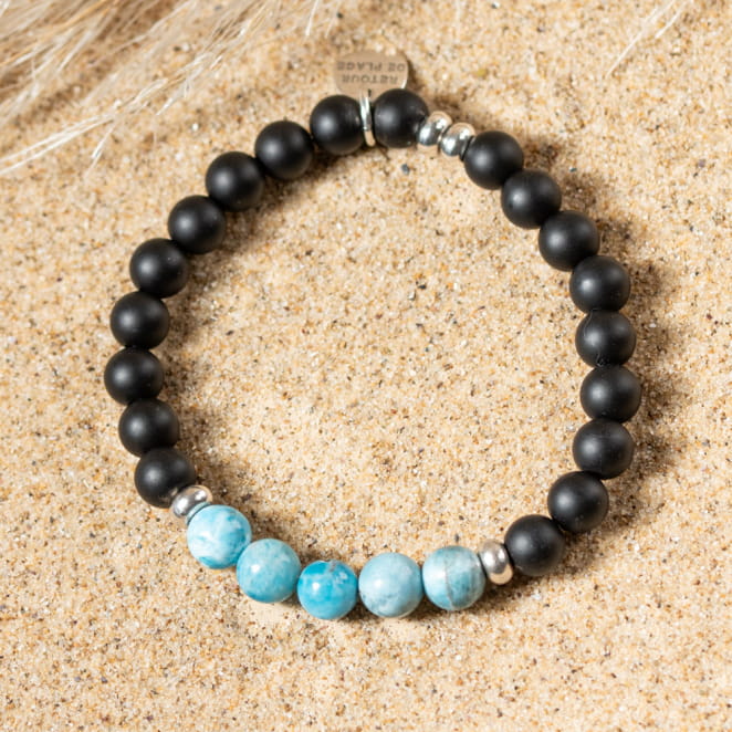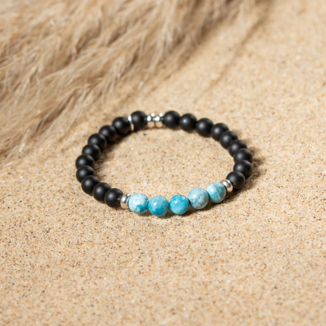 Ajoutez une touche d'aventure au style de votre enfant avec le bracelet fantaisie Vésuve ! Composé de perles en apatite turquoise et en agate noire, ce bijou élégant et coloré rehaussera son poignet avec charme et originalité.