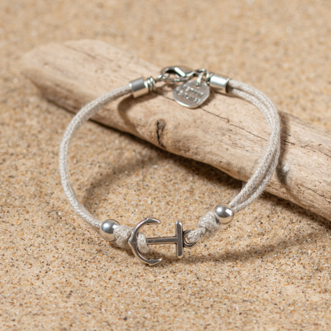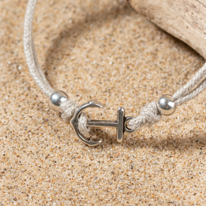 Complétez le style marin de votre enfant avec le bracelet Yole ! Ce bijou raffiné se compose d'un cordon en lin beige, doux et naturel, agrémenté d'une élégante ancre argentée. Inspiré par les aventures en mer, le bracelet Yole est un accessoire simple et chic, parfait pour les petits explorateurs qui aiment l'esprit marin et l'élégance discrète.