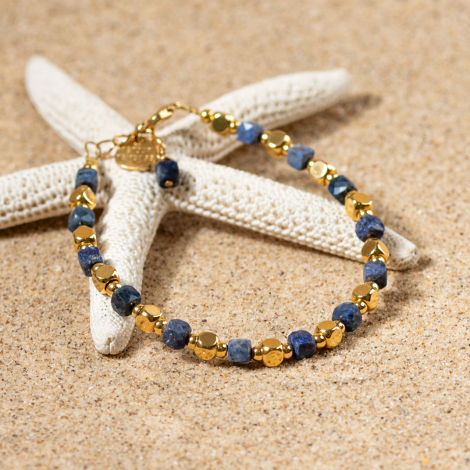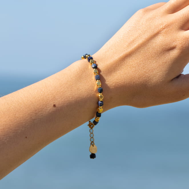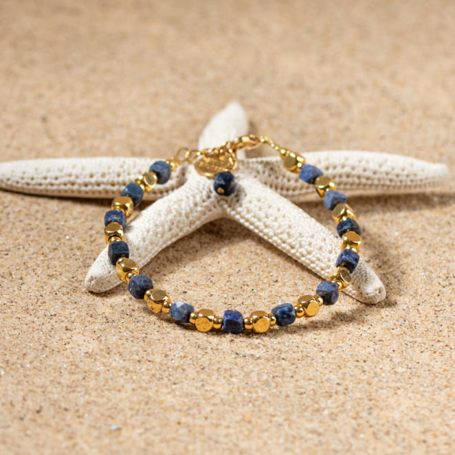 Ce délicat et élégant bracelet Faro vous rappelle de longues journées d'été ensoleillées avec ses petites perles en dumorterite bleu. Un bijou tendance qui accompagne tous vos looks avec sa douce couleur bleu !
