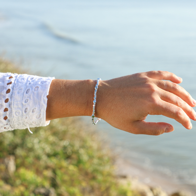 Découvrez l'élégance singulière de notre bracelet Game argenté aux formes carrées et rondes, un bijou lumineux et moderne qui capte la lumière à chaque mouvement. Avec son design tout en contraste et en douceur, il conjugue géométrie et raffinement pour sublimer chaque poignet. Un accessoire qui se porte aussi bien en été sur la plage que durant le reste de l'année en ville.