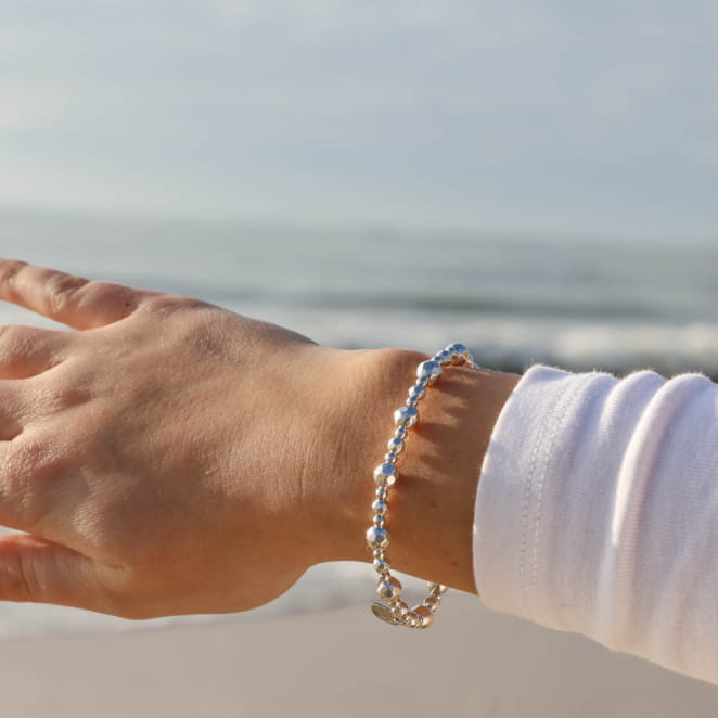 Apportez une touche de lumière discrète à vos tenues avec le bracele Garance argenté, délicatement orné de perles facettées qui captent et reflètent la lumière à chaque mouvement. Facile à enfiler grâce à son design élastique, il allie élégance et simplicité pour sublimer aussi bien vos escapades en bord de mer que vos soirées habillées ✨