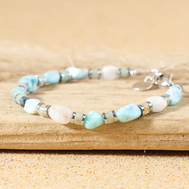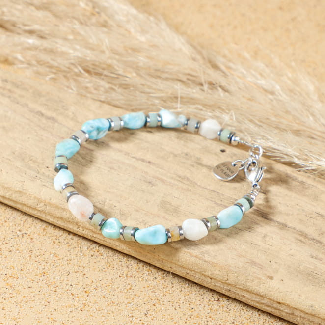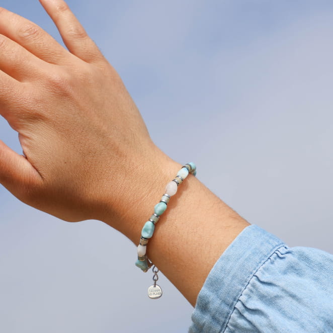 Le bracelet Hazel incarne l'élégance en toute simplicité. Confectionné avec des perles argentées et des perles vert d'eau, ses tons doux évoquent la sérénité. Parfait pour ajouter une touche de raffinement à votre tenue quotidienne ou pour compléter une allure sophistiquée en soirée.