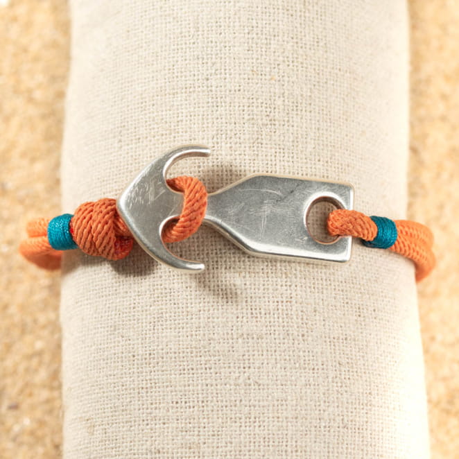 Succombez au charme discret et raffiné du bracelet Alarick. Simple et chic, il se glisse autour de votre poignet avec une élégance subtile. Son cordon orange, allié à une touche de bleu, donne du peps à votre tenue. Son ancre en métal argenté apporte une touche marine, idéale pour toutes les occasions.