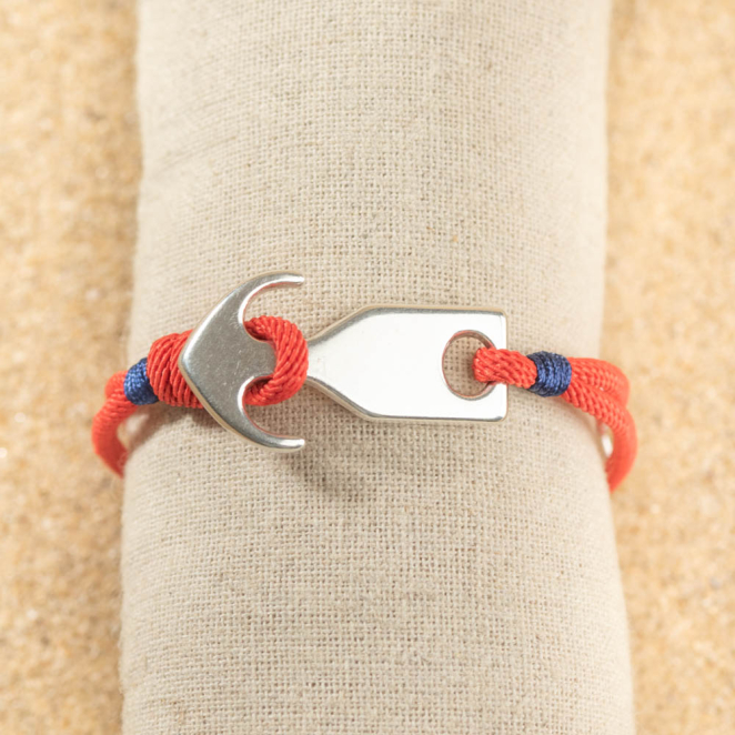 Découvrez le bracelet Alarick, une pièce élégante pour homme. Ce bracelet rouge est sublimé par une ancre argentée, symbolisant la solidité et l'aventure. Les détails bleu marine ajoutent une touche de contraste dynamique et moderne. Parfait pour un style maritime chic, il combine sophistication et caractère pour rehausser vos tenues avec finesse.