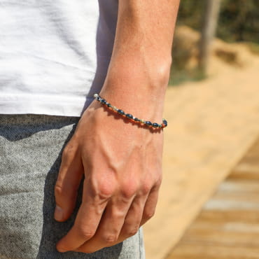 Optez pour le bracelet Benjamin, un accessoire sobre, spécialement conçu pour les hommes. Ce bracelet allie le charme intemporel du métal argenté et la profondeur minérale de l’hématite grise, pour un style à la fois moderne et naturel. Il apporte une touche de raffinement discret, parfait pour ceux qui aiment les bijoux faits main et les matières brutes.. Ce bijou est déal pour un port quotidien.
