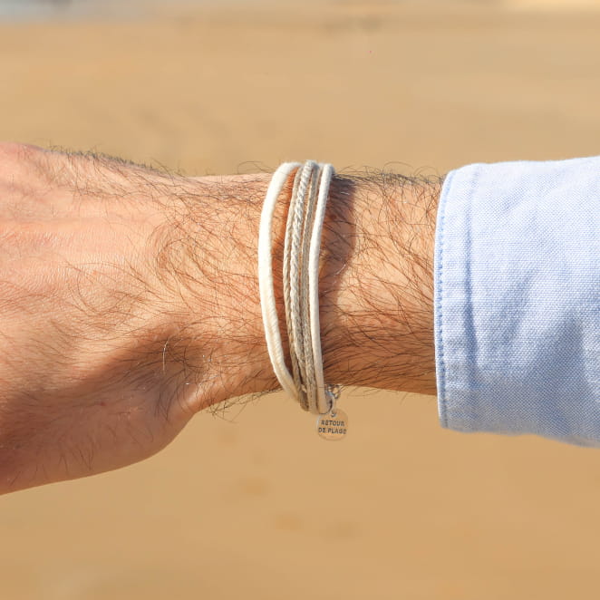 Découvrez notre bracelet Complices, un bijou multirang doux et naturel qui célèbre la complicité à deux. Ce bracelet, composé de cordon blanc, de lin beige et d’une touche de tressage soutache, évoque la simplicité et l’authenticité des moments partagés. Son style épuré et ses matériaux naturels en font un idéal pour symboliser votre lien unique !
