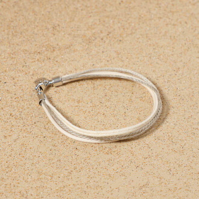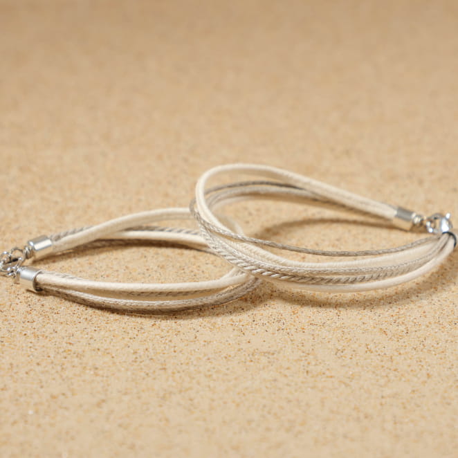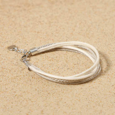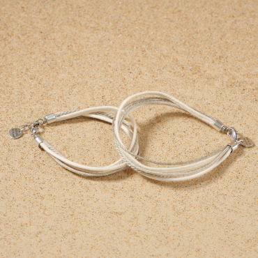 Découvrez notre bracelet Complices, un bijou multirang doux et naturel qui célèbre la complicité à deux. Ce bracelet, composé de cordon blanc, de lin beige et d’une touche de tressage soutache, évoque la simplicité et l’authenticité des moments partagés. Son style épuré et ses matériaux naturels en font un idéal pour symboliser votre lien unique !