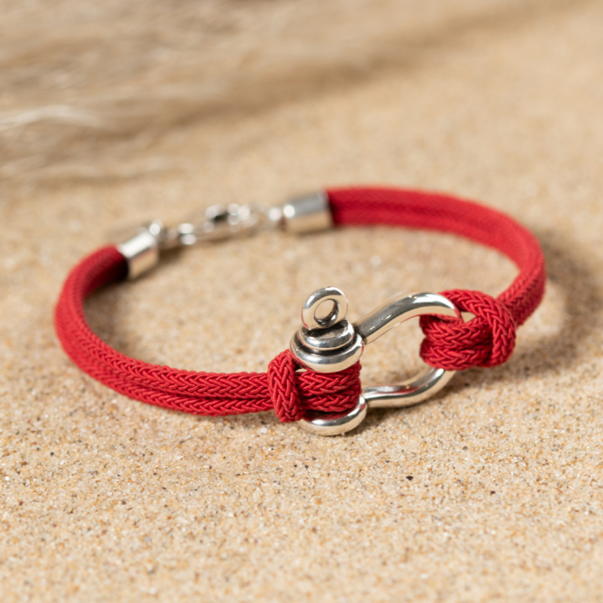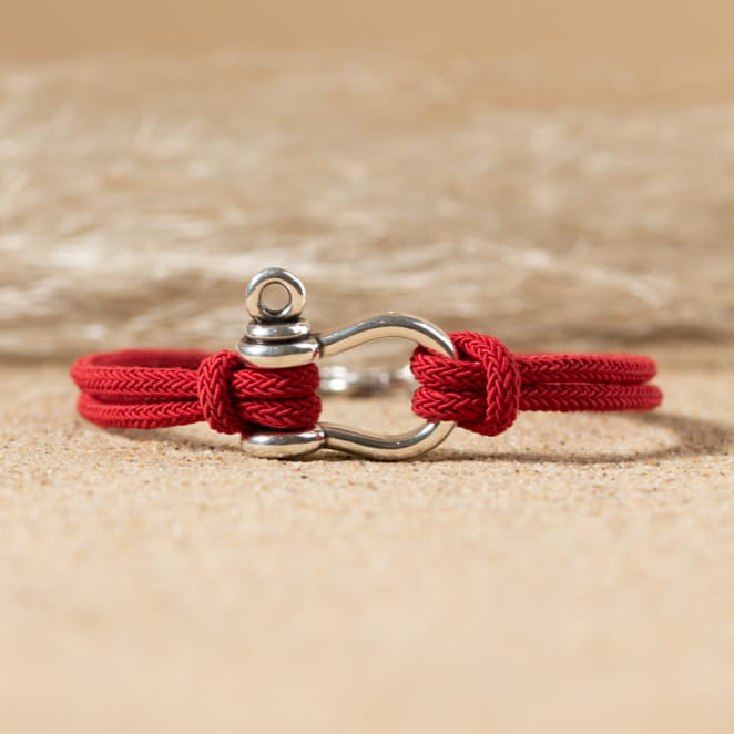 Découvrez le bracelet pour homme Cotinière, un bijou tendance à l'image du port de la Cotinière. Paré d'une manille en métal argenté et d'un cordon rouge, il évoque l'océan et ajoute de la couleur à votre style. Parfait pour les amoureux de la mer en quête d'une touche colorée.