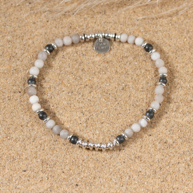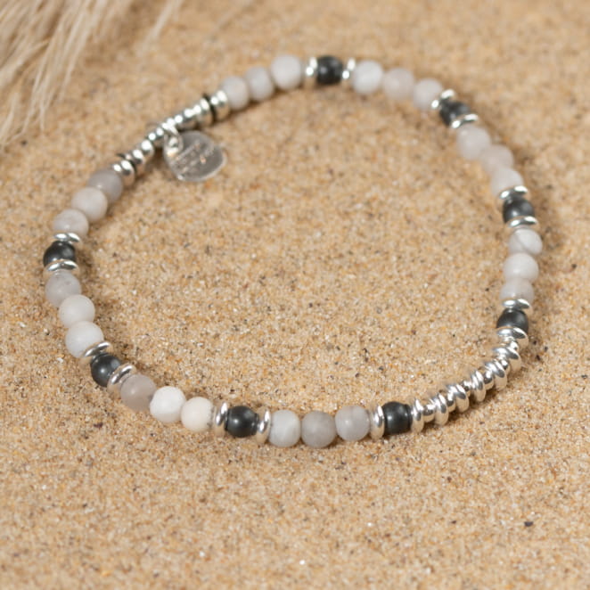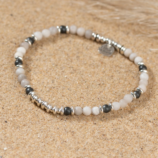 Affirmez votre style avec le bracelet Danny, conçu pour les hommes modernes ! Ce bracelet remarquable combine des perles en hématite et des perles en agate grise. Mêlées à l'éclat de l'argent , ces couleurs offrent une esthétique sophistiquée et masculine. Porté seul ou en combinaison avec d'autres accessoires, le bracelet Danny ajoute une touche de distinction à toute tenue.