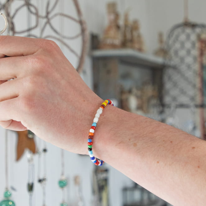 - de perles rocaille en verre multicolore,