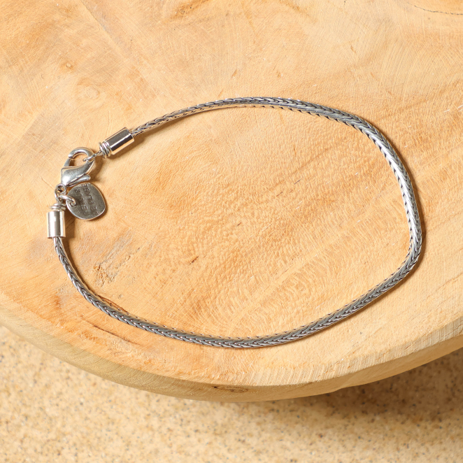 - d'une fine chaîne tressée en métal plaqué argent 999,