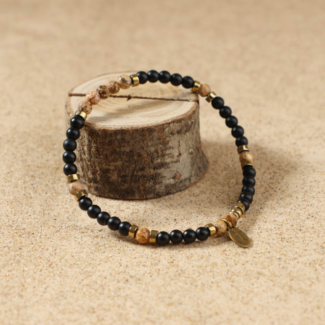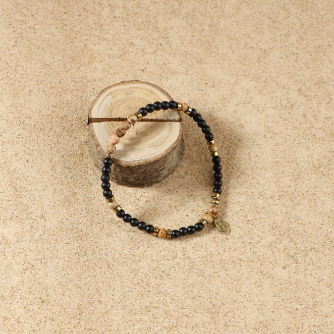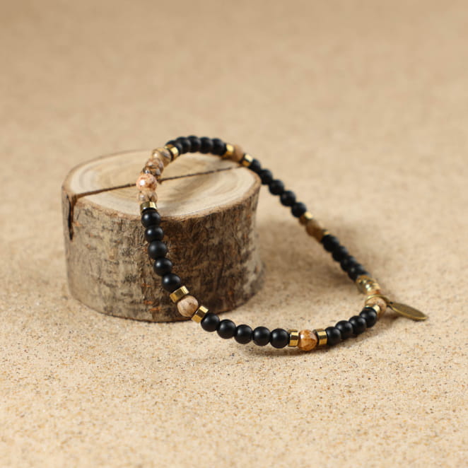 Affirmez votre style avec le bracelet homme Livio. Ses perles en onyx noir, en pierre beige et en hématite dorée rehaussent votre poignet avec élégance. Associant classe et virilité, ce bijou masculin complète parfaitement vos tenues, ajoutant une touche sophistiquée à votre allure.