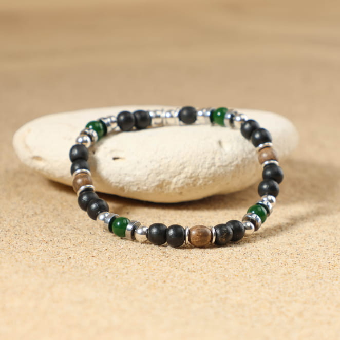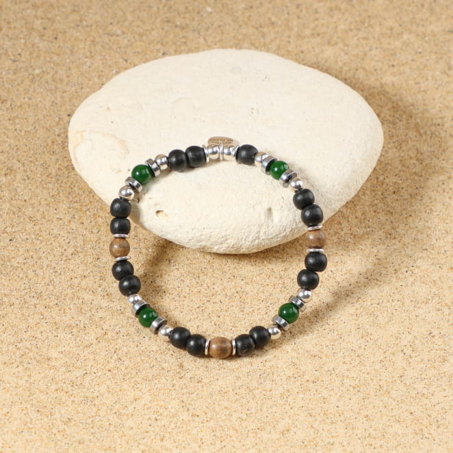 Intemporel, ce bracelet Naoki est idéal pour accompagner tous vos looks du quotidien. Son assortiment de perles beiges, vertes, argentées et noires en fait un bijou pour homme original et chic à la fois.