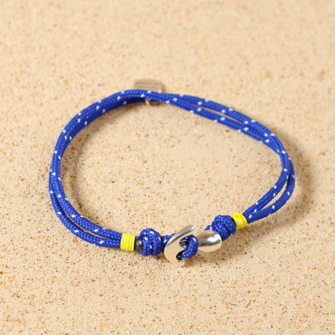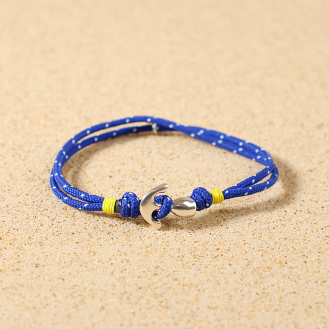 Laissez-vous porter par l’esprit marin avec ce bracelet pour homme Peppo, un mélange harmonieux de couleurs. Ce bracelet pour homme, alliant un cordon polyester jaune et un cordon en nylon bleu dur, est agrémenté d’un pendentif et fermoir en forme d’ancre argentée. Un bijou artisanal qui évoque la douceur des vacances et l’authenticité du fait main, parfait pour ceux qui aiment les accessoires pleins de caractère et de lumière.