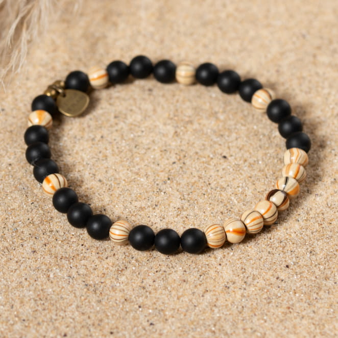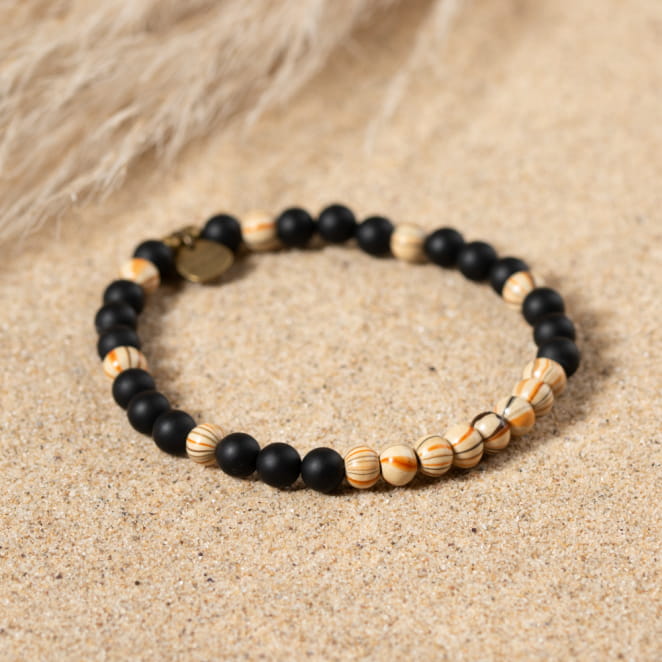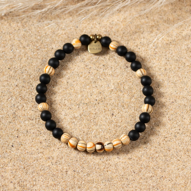 Le bracelet pour homme Théo mêle perles en bois multicolores et perles noires pour une allure sophistiquée. Agrémenté d'une touche de bronze, il incarne virilité et élégance. Un accessoire parfait pour un style décontracté et raffiné.
