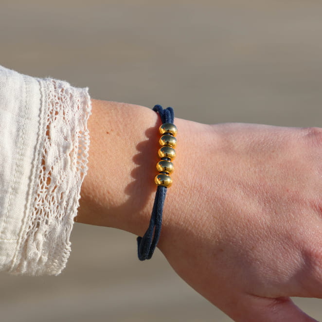 Découvrez l'élégance naturelle avec le bracelet Île. Composé d'un cordon, il met en avant de jolies perles dorées, créant un look simple mais éclatant. Une fusion parfaite de simplicité et de sophistication, ce bracelet illumine votre poignet avec une touche authentique de beauté.