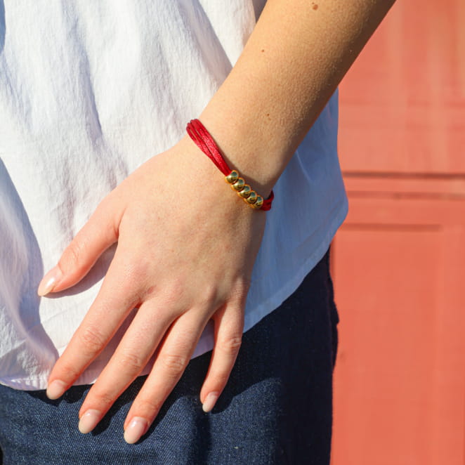 Découvrez l'élégance naturelle avec le bracelet Île. Composé d'un cordon, il met en avant de jolies perles dorées, créant un look simple mais éclatant. Une fusion parfaite de simplicité et de sophistication, ce bracelet illumine votre poignet avec une touche authentique de beauté.